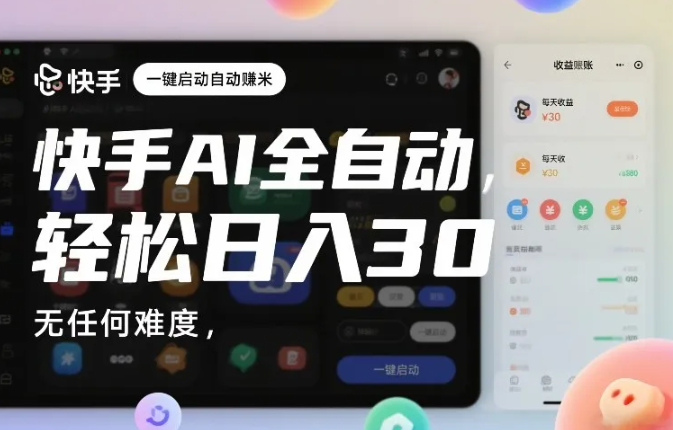会员创业网 AI课程 快手AI全自动挂G,一键启动自动賺米,无任何难度,轻松日入30—1张【揭秘】 https://svipm.cn/25311.html