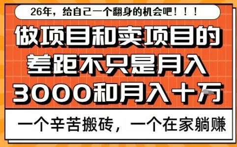 做项目和卖项目的区别不只是月入3k和月入1Ow,更明显的差距是,一个忙活一整月,賺一个基本的生活费,甚至生活费不一定賺得到,还沦落到被割韭菜的地步,而卖项目的整天发发朋友圈,游山玩水,收益轻松进账!这并不是我的个人观点,不信可以看看带你做项目的老师,他们每天什么都不用做,却到处玩乐,换车买房,他们的钱可不是辛苦做项目来的,他们都是靠卖项目賺钱!2026年,给自己一个翻身的机会吧!