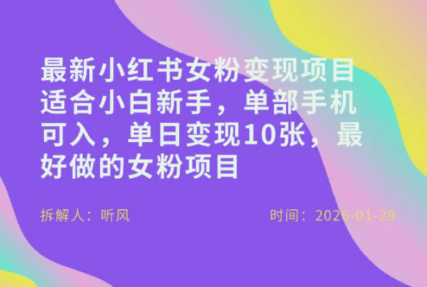 会员创业网 小红书课程 小红书女粉最新变现项目,适合小白新手,单部手机可入,单日变现多张 https://svipm.cn/25496.html