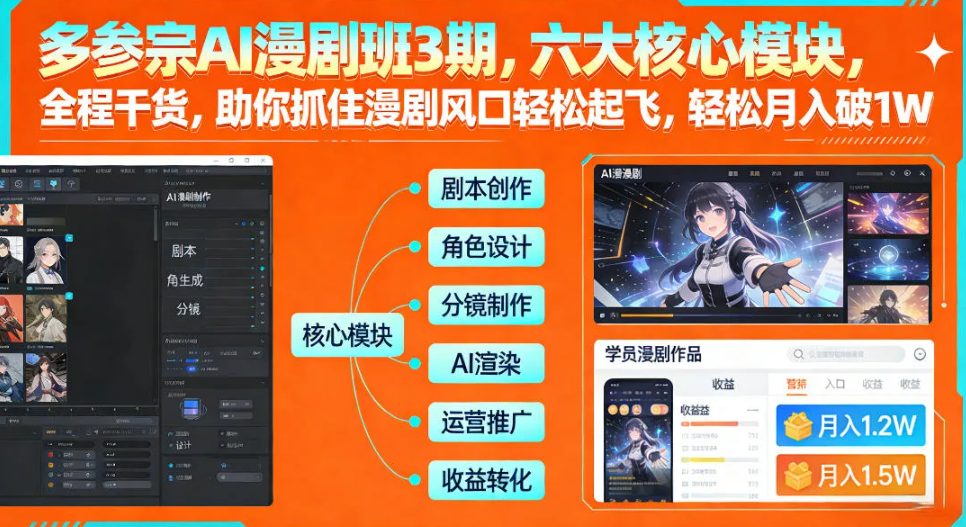 多参宗AI漫剧班3期,六大核心模块,全程干货,助你抓住漫剧风口轻松起飞,轻松月入破1W+、