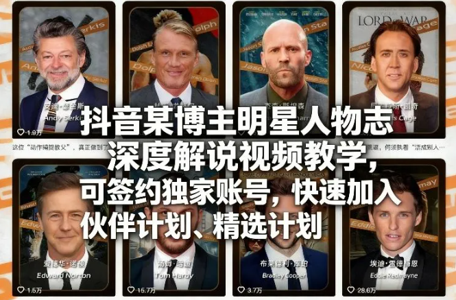 抖音某博主明星人物志深度解说视频教学,可签约独家账号,快速加入伙伴计划、精选计划