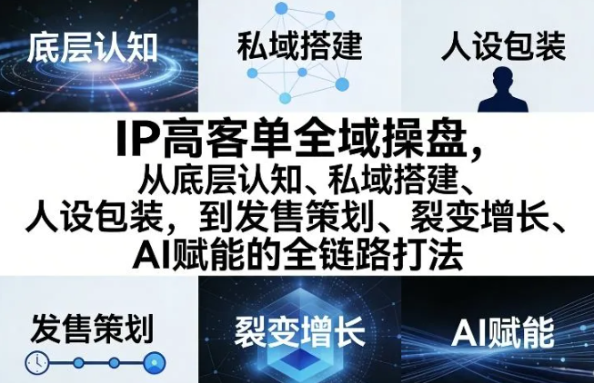 IP高客单全域操盘,从底层认知、私域搭建、人设包装,到发售策划、裂变增长、AI赋能的全链路打法