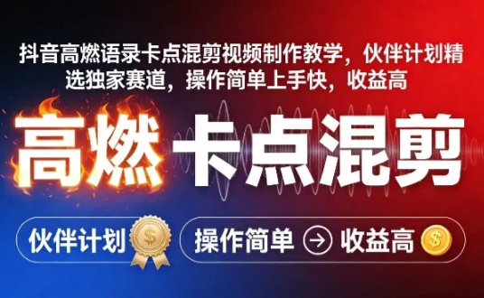 2026年,抖音创作者伙伴计划,依然是普通人低门槛增收的黄金风口,而高燃语录卡点混剪,更是新手入局的最优赛道——不用露脸、不用实拍、操作简单、上手快,只要掌握系统的实战方法,就能轻松拿下平台精选高收益。