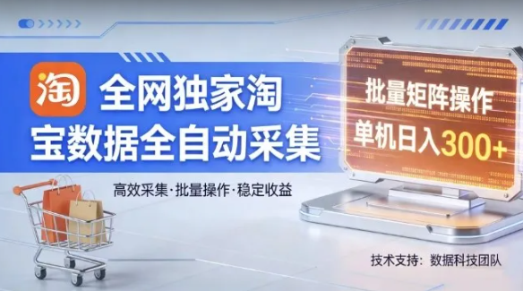 会员创业网 淘宝课程 全网独家,淘宝数据全自动采集项目,批量可矩阵,单机轻松日入300【揭秘】 https://svipm.cn/26640.html