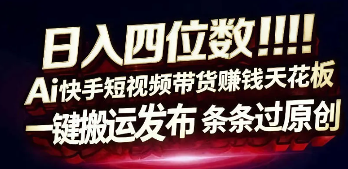 日入4位数快手平台ai全自动带货一刀不剪黑科技搬运一键发布原创【揭秘】