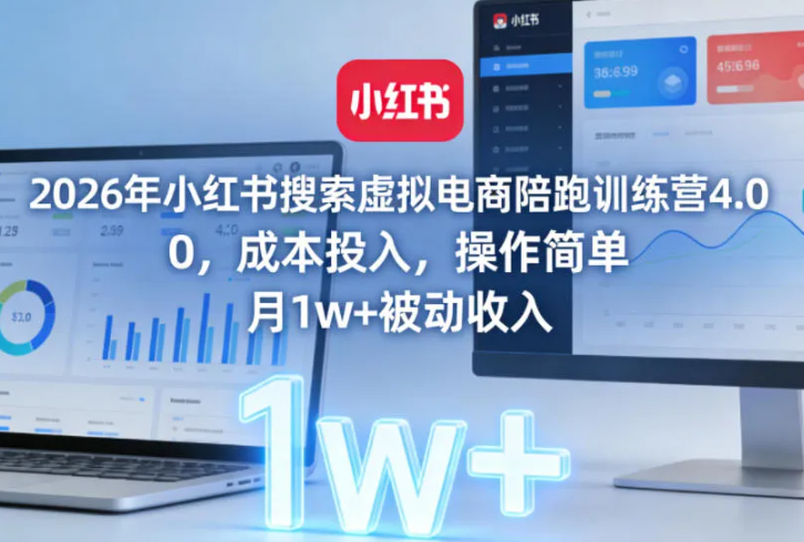 2026年小红书搜索虚拟电商陪跑训练营4.0,0成本投入,操作简单,月1w+被动收入