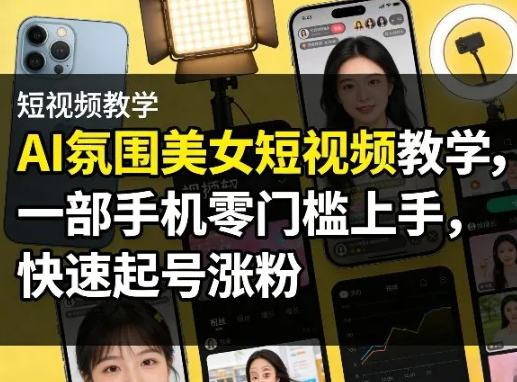 会员创业网 AI课程 AI氛围美女短视频教学,一部手机零门槛上手,快速起号涨粉 https://svipm.cn/26882.html