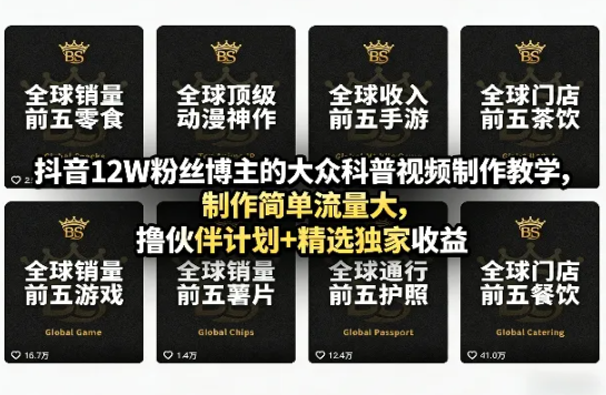 会员创业网 短视频 抖音12W粉丝博主的大众科普视频制作教学,制作简单流量大,撸伙伴计划+精选独家收益 https://svipm.cn/26908.html