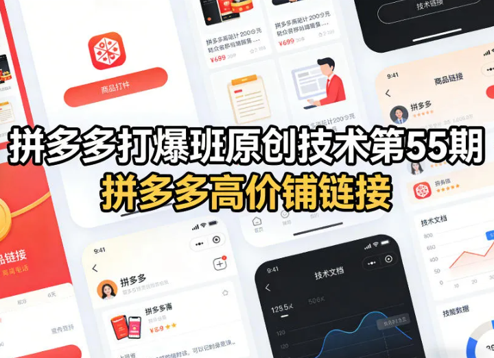 这门拼多多打爆班原创技术第55期,全程无虚高门槛、无复杂资源要求,只讲后台能操作、原创可落地、高价能起量的干货内容,剔除所有花里胡哨的无用知识点,把重心放在实操步骤、原创技术运用、高价铺链优化和违规避坑上,让你不用盲目试错、不用低价内卷、不用砸大额推广,跟着课程自学就能完全掌握,轻松解锁拼多多高价铺链+爆款打造技能,既能摆脱低价恶性竞争,又能稳定出单增收,快速实现店铺盈利升级。