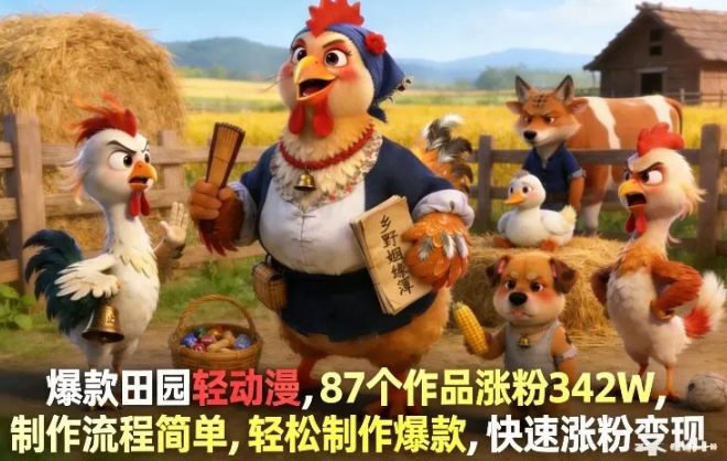 会员创业网 短视频 爆款田园轻动漫,87个作品涨粉342W,制作流程简单,轻松制作爆款,快速涨粉变现 https://svipm.cn/26957.html