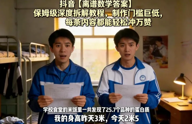 会员创业网 AI课程 抖音【离谱数学答案】保姆级深度拆解教程,制作门槛巨低,每条内容都能轻松冲万赞,附详细步骤 https://svipm.cn/26992.html