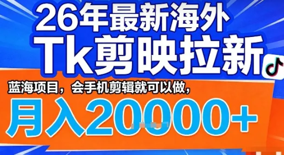2026年最新海外Tk剪映拉新,蓝海项目,会手机剪辑就可以做,月入2W+【揭秘】