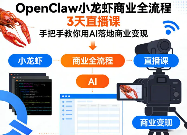 OpenClaw小龙虾商业全流程3天直播课,手把手教你用AI落地商业变现
