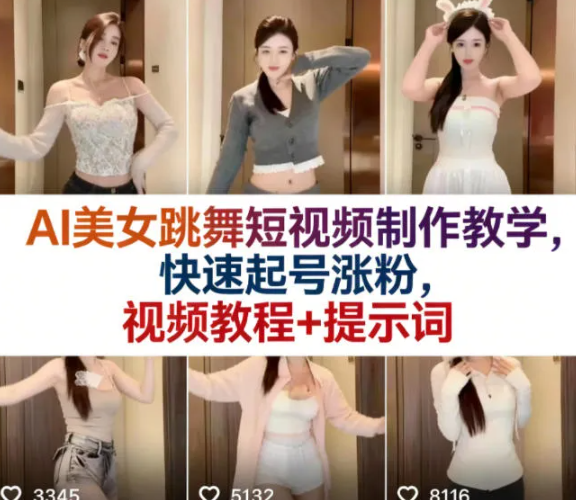 AI美女跳舞短视频制作教学,快速起号涨粉,视频教程+提示词