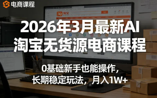 2026年3月最新AI淘宝无货源电商课程,0基础新手也能操作,长期稳定玩法,月入1W+