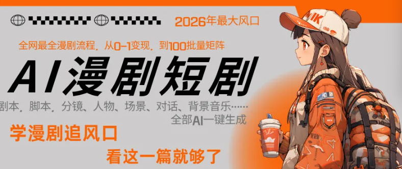 26年AI一键生成漫剧短剧,普通人最易上车的超级风口:零团队、零专业、低成本、高利润,1人就能跑通从剧本到变现全链路,单集1分钟利润轻松300+,还能做IP、接承制、賺流量,彻底颠覆传统短剧公司模式,小白一篇课程学会~(全网最详细一站全含AI短剧SOP)