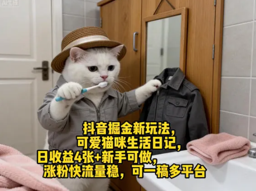 会员创业网 抖音课程 抖音掘金新玩法,可爱猫咪生活日记,日收益4张+新手可做,涨粉快流量稳,可一稿多平台 https://svipm.cn/27473.html