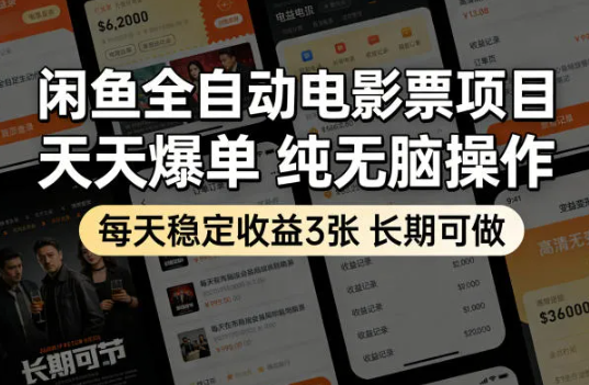 会员创业网 闲鱼课程 闲鱼全自动电影票项目,天天爆单,纯无脑操作,每天稳定收益3张,长期可做【揭秘】 https://svipm.cn/27476.html