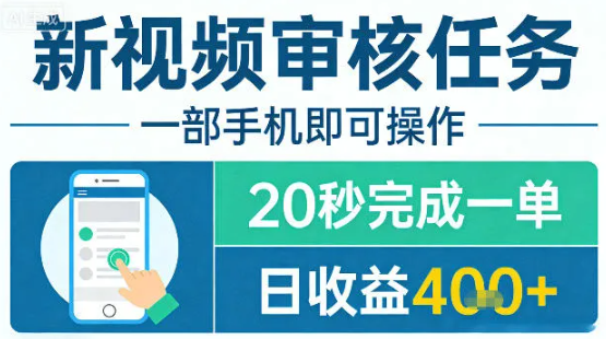 新视频审核任务,一部手机即可操作,20秒完成一单,日收益4张+【揭秘】