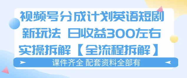 会员创业网 视频号课程 视频号分成计划,英语短剧新玩法,日收3张+实操全流程拆解 https://svipm.cn/27528.html