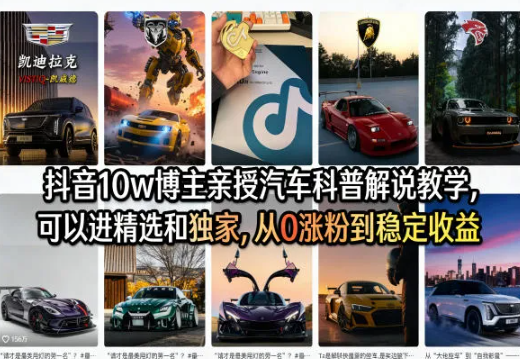 抖音10w博主亲授汽车科普解说教学,可以进精选和独家,从0涨粉到稳定收益(详细视频课程+1T素材)