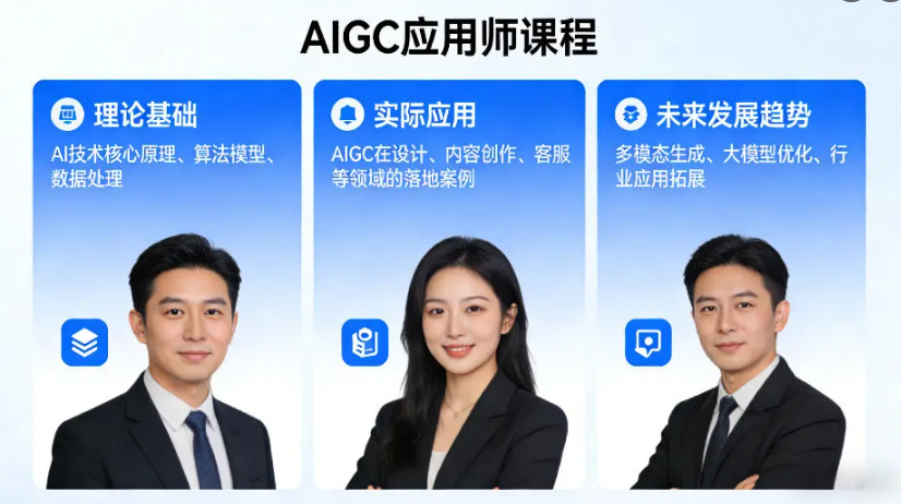 AIGC应用师课程,覆盖了AI技术的理论基础、实际应用、以及未来发展趋势