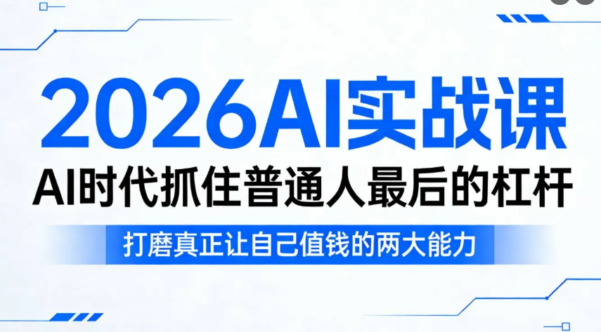 2026AI实战课,AI时代抓住普通人最后的杠杆,打磨真正让自己值钱的两大能力