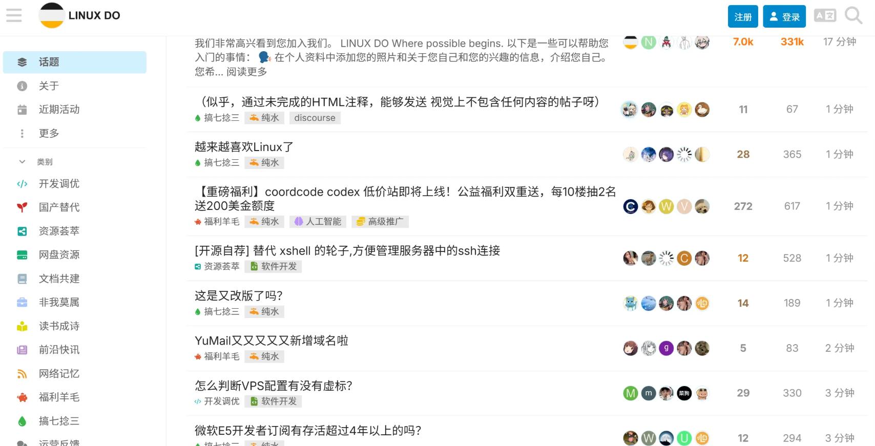- 主题讨论——支持 Linux、开源软件、AI 技术等多类别话题交流。