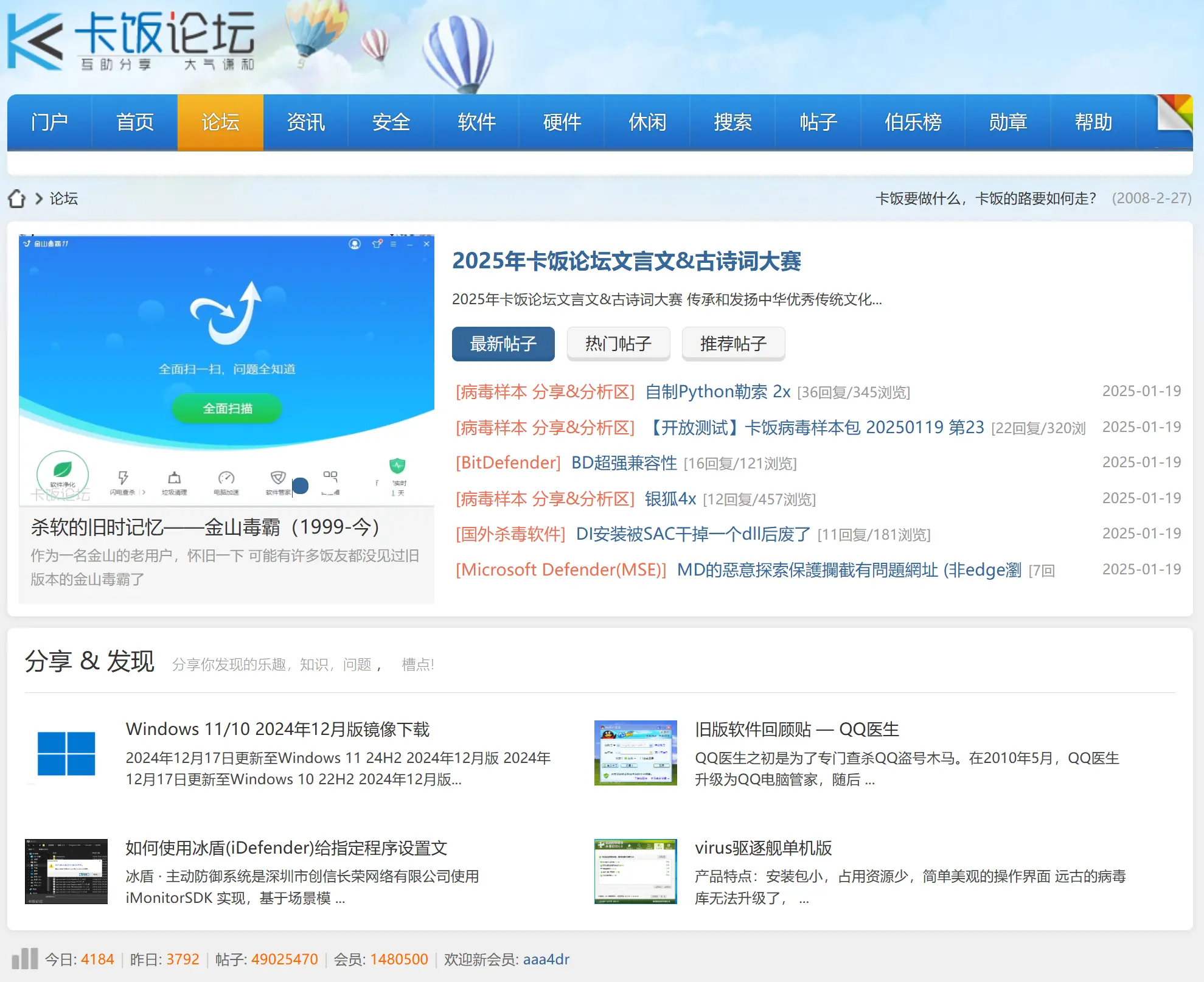 卡饭论坛是一个面向 Windows 用户的中文技术社区,为用户提供丰富的系统优化知识、软件资源以及技术交流平台。论坛致力于帮助用户提升系统性能,解决技术难题,并提供多种工具和资源,成为众多技术爱好者的聚集地。卡饭论坛以其广泛的技术内容和友好的用户社区著称,是 Windows 用户优化系统、获取软件资源以及学习技术的首选平台。论坛汇集了从入门到高级的实用教程和工具,让用户无论是优化系统性能还是解决复杂技术问题,都能轻松找到答案。同时,论坛鼓励技术讨论和资源共享,用户能够在这里相互学习,共同进步。