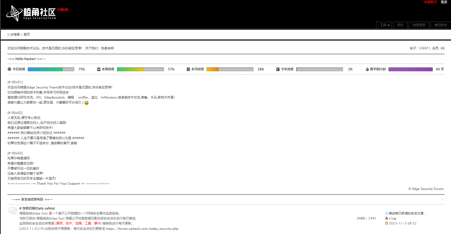 棱角技术论坛是一个中文网络安全论坛,提供关于网络安全、黑客技术、渗透测试等方面的知识分享和经验交流。它为网络安全从业者、研究人员和黑客爱好者提供一个学习和成长的平台。