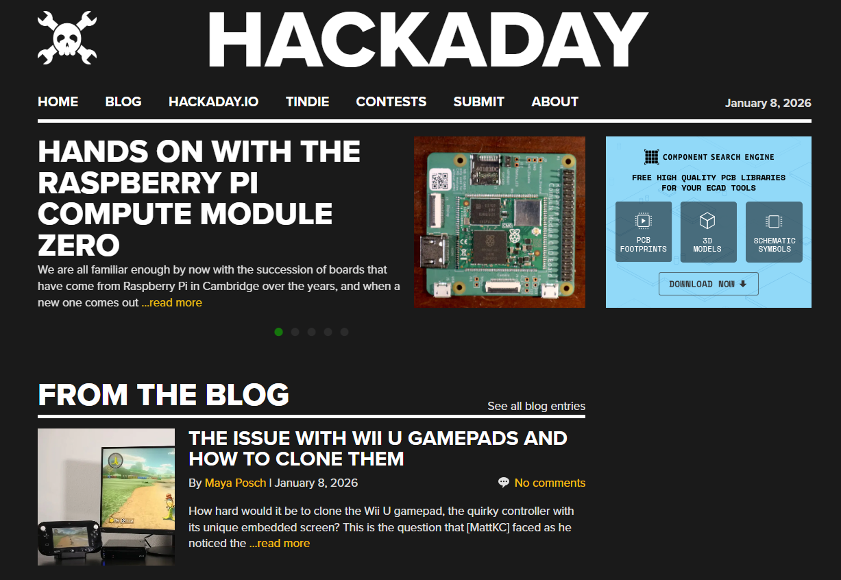 Hack a Day(https://hackaday.com/)是一个英文科技博客,专注于分享日常的科技新闻、电子项目、DIY项目、黑客技巧和产品评测。它由O’Reilly Media公司拥有,是一个面向爱好者和专业人士的社区,鼓励创新和技术分享。